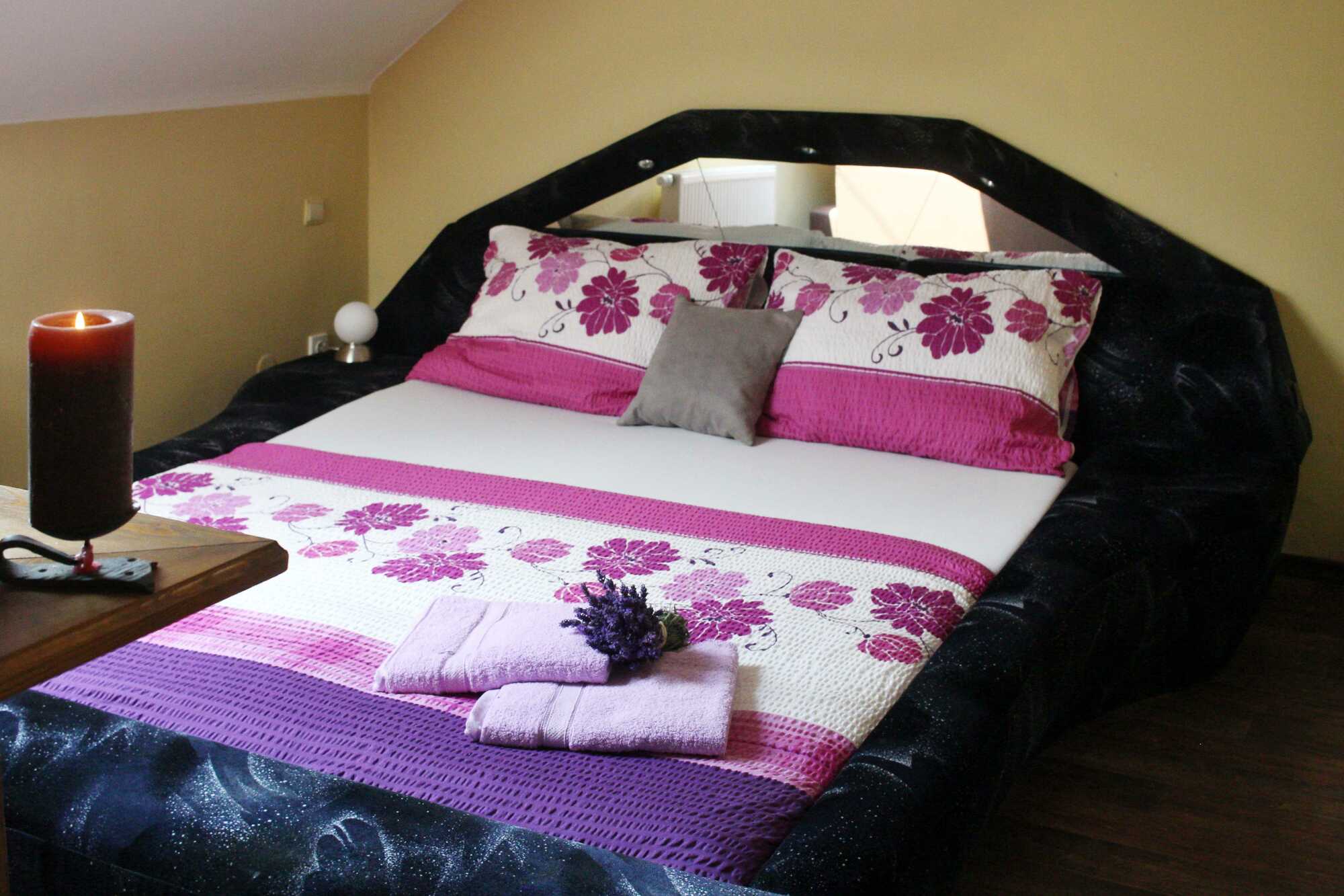 1x dvoulůžkový apartmán s vířivou vanou a sprchou, 7x dvoulůžkových pokojů se sprchou, 2x přistýlky, restaurace, vinárna, vinný sklep, možnost úschovy kol, parkování automobilů před penzionem.