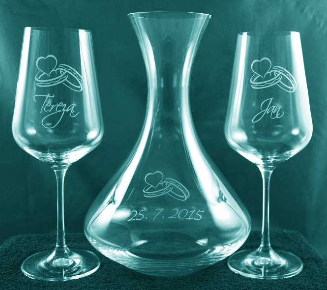 Provádíme pískování log, motivů i sloganů do skla, keramiky či kovu. Nabízíme svatební sklenice, půllitry, karafy na víno, skleničky na víno, džbány.