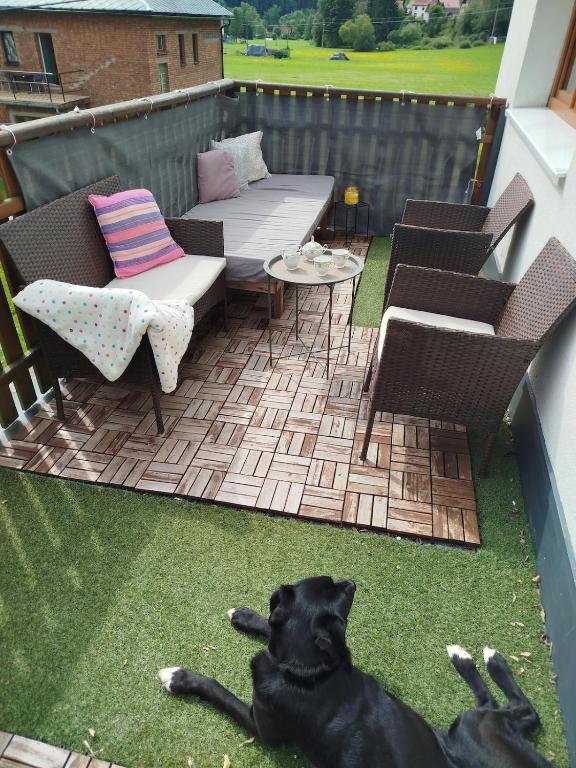 Apartmán Přijďte pobejt nabízí nádherný výhled do zahrady a ubytování s terasou i balkonem.