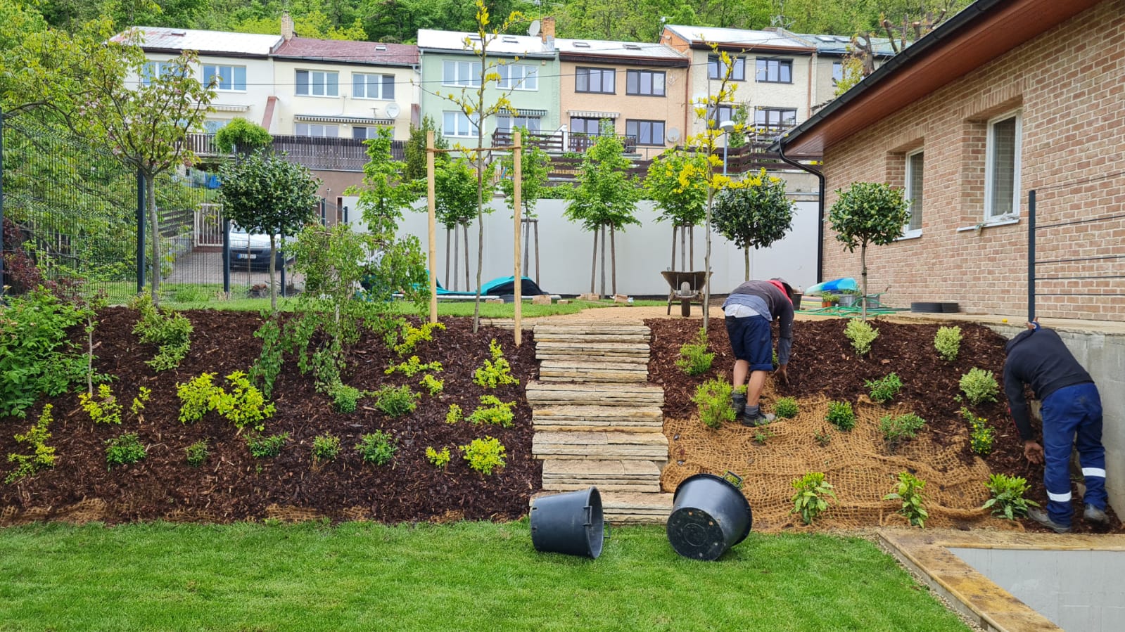 Naší hlavní pracovní činností jsou realizace a návrhy zahrad na klíč. Zajišťujeme výstavbu drobných zahradních staveb, jako jsou zídky, schodiště, chodníky, ploty, terasy, pergoly, altány aj.