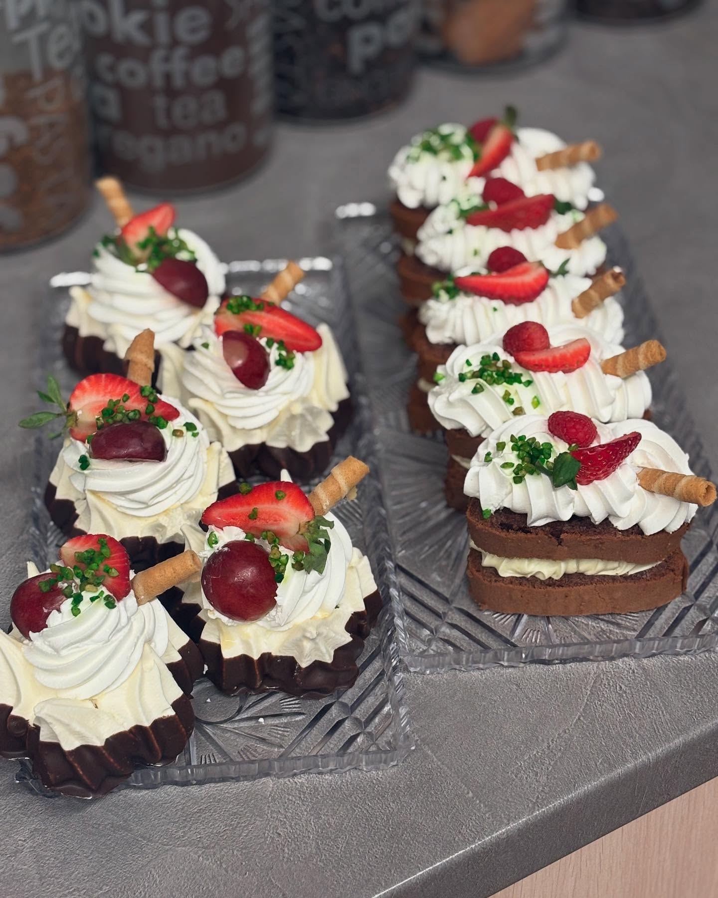 Najdete u nás bohatý výběr čerstvých zákusků, dezertů, chlebíčků i croissantů, které skvěle doplní kvalitní káva, domácí limonáda, zmrzlinové poháry nebo třeba svařák či pivo.