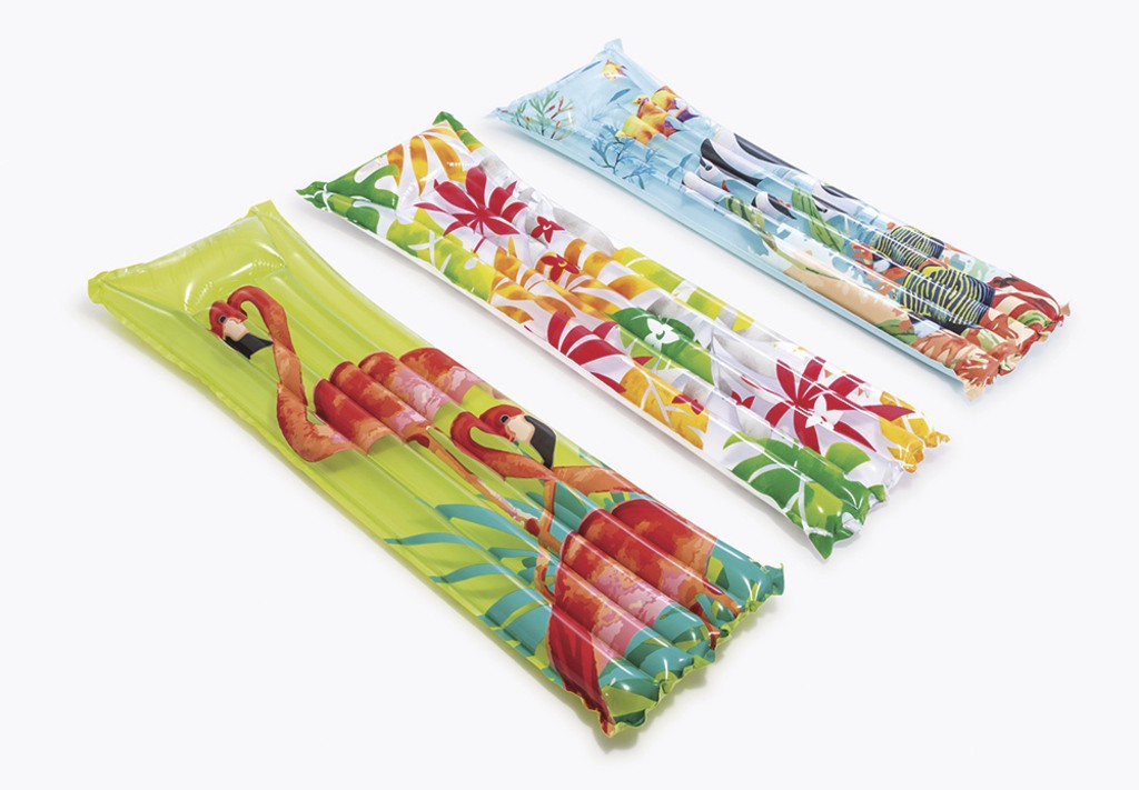 • nafukovací lehátka, křesla, kruhy a bazénky