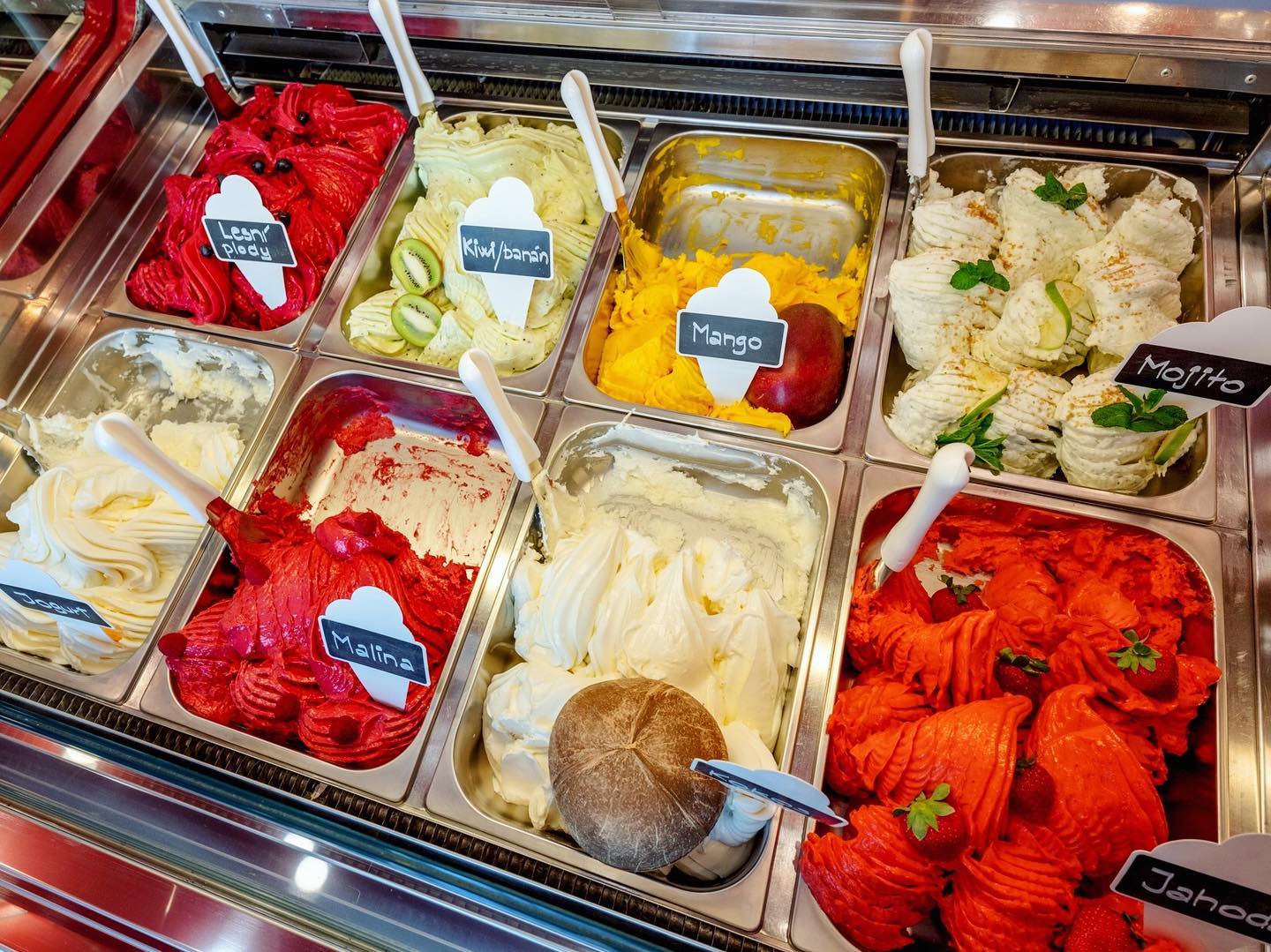 pravá italská zmrzlina, domácí cukrovinky, mražené jogurty