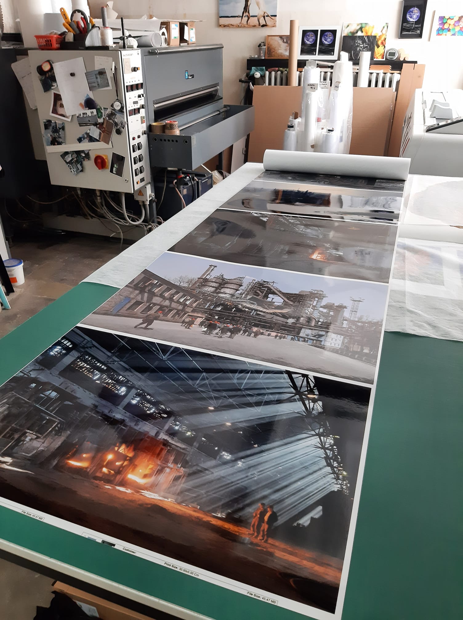 Jako první v republice jsme zavedli laminaci fotografií /1990/ a jako první jsme zavedli digitální osvit velkoformátových fotografií na stroji Durst Epsilon o pracovní šíři 76 cm.