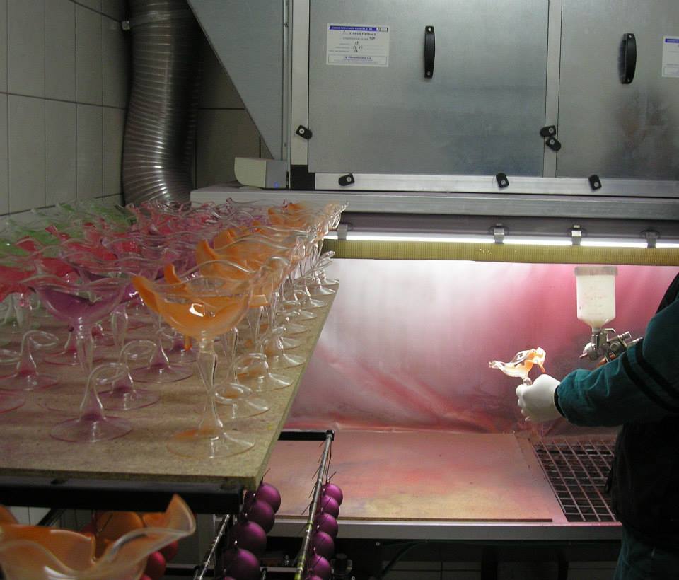 Barvení skla - hydroglazury je založena na jedinečném složení systému teplem vytvrzovaných pryskyřic pro brilantní dekoraci skla a keramiky. Vodou ředitelné organické barvy neobsahují těžké kovy. Jsou ekologické a pro okolí nezávadné. Použití: flakony na kosmetiku a voňavky vinné, likérové a nápojové láhve, dárkové a reklamní předměty, sklenice, jídelní a nápojové soupravy, dekorační světla a luminiscenční světla, sklo pro nábytek.