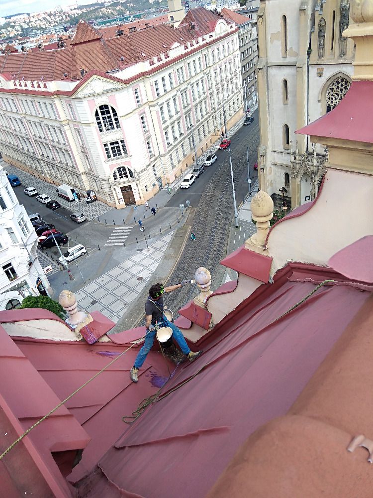 Zajišťujeme mytí, opravy a nátěry fasád i střech. Provádíme zednické, klempířské a pokrývačské práce. Mezi naše další služby patří tmelené spár panelových domů, hydroizolace plochých střech, montáž reklamních panelů či instalace zábran proti ptactvu.