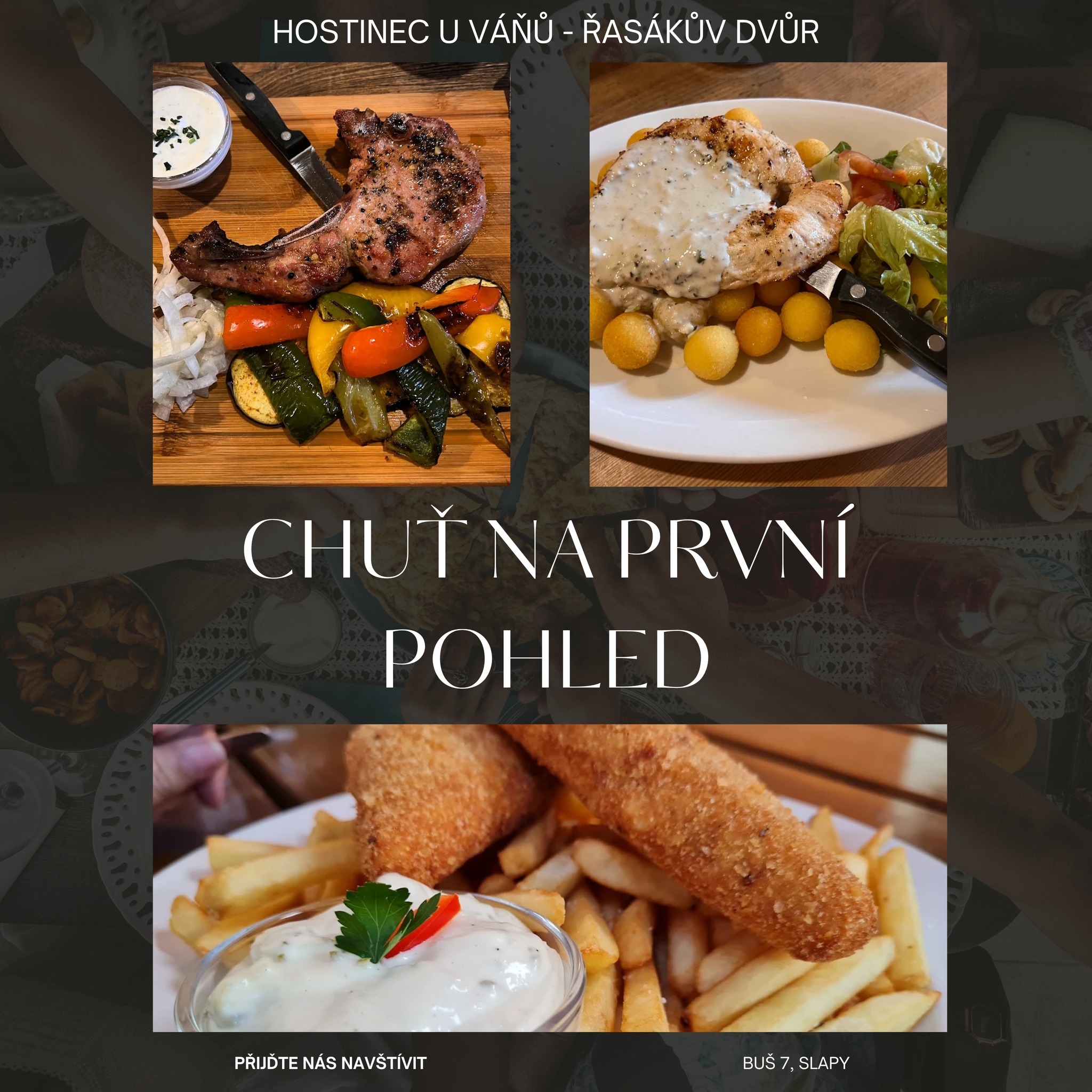 Příjemné posezení v našem hostinci, který se nachází na náměstíčku malebné obce Buš nedaleko Slapské přehrady.