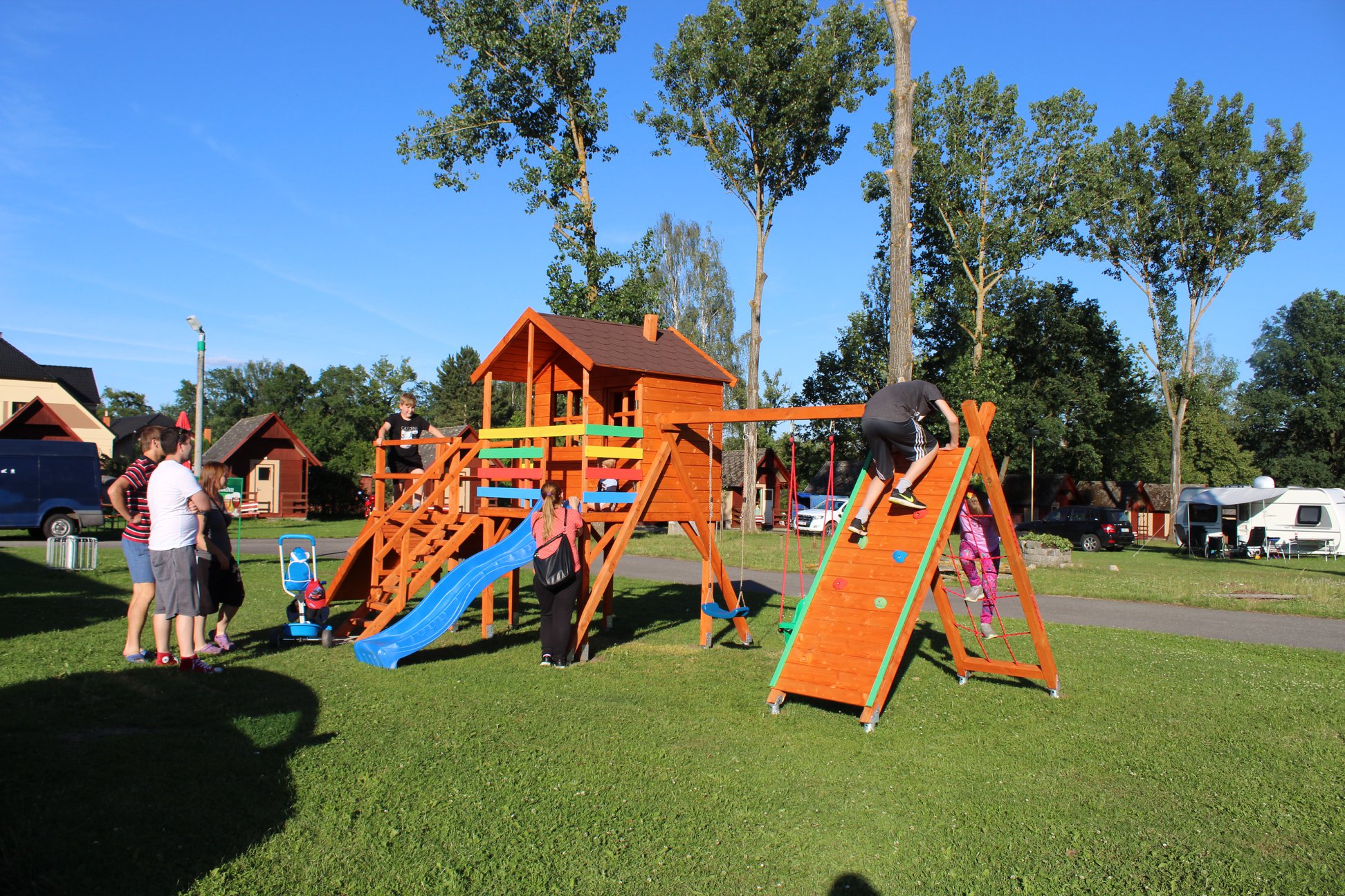 Poskytujeme ubytování v různých typech chat a ubytovně (celková kapacita je 130 lůžek) a velký prostor pro karavany (50 přípojek) a stany.