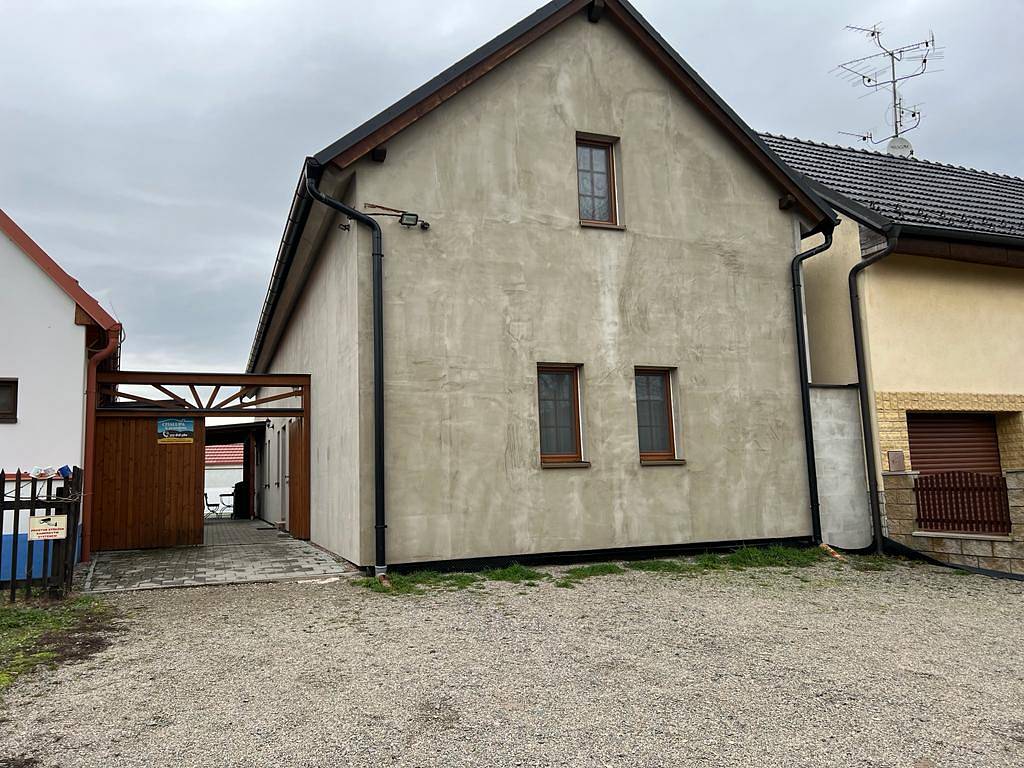 Novostavba ve venkovském stylu, 7 ložnic, 5 x koupelna s WC, společenská místnost s kuchyní, venkovní bazén, venkovní posezení s možností grilování.