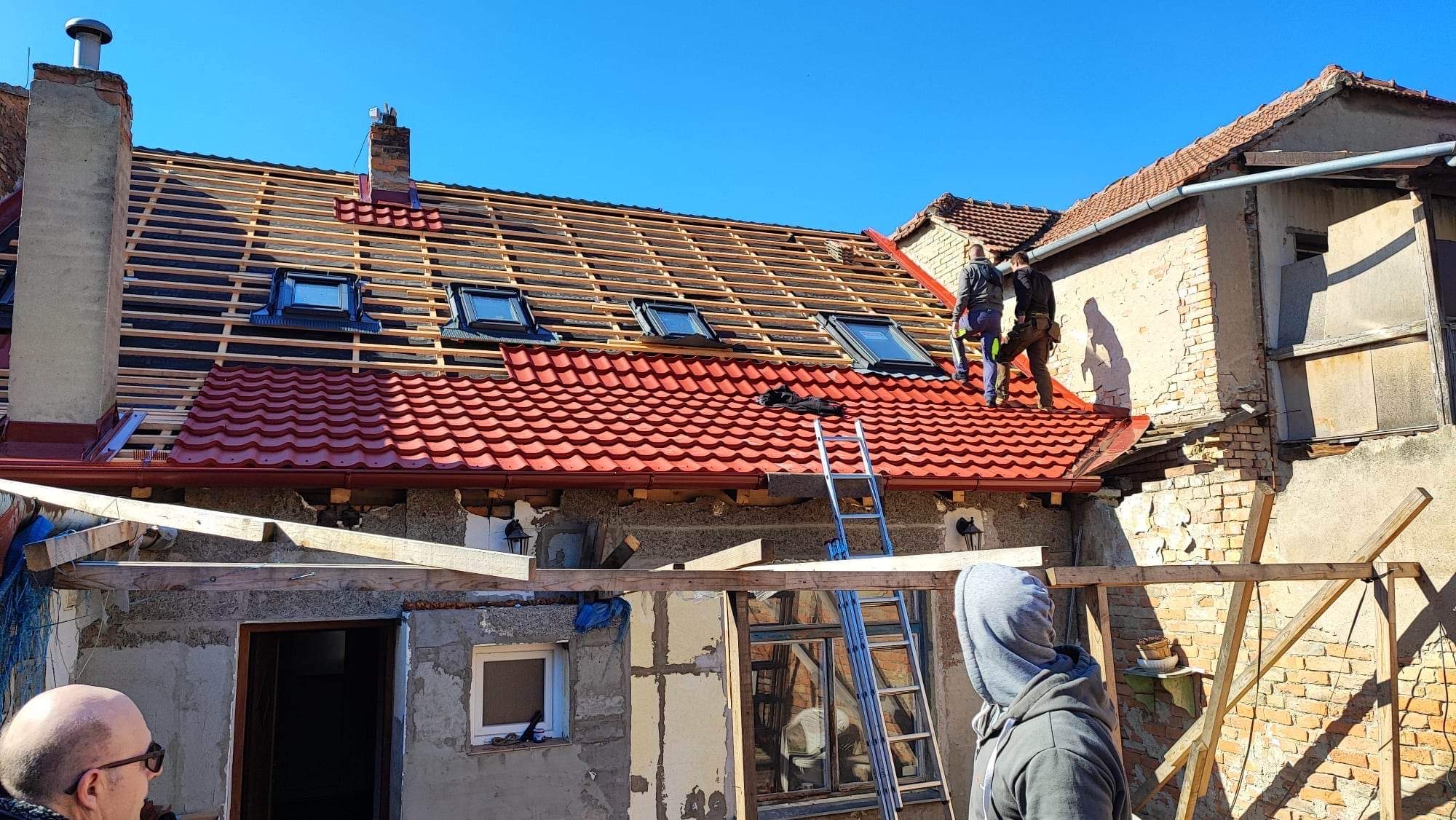 Nedílnou součástí firmy jsou realizace střech. Nabízíme pokrývačské, klempířské a tesařské práce. Zajišťujeme dodávky a montáže všech druhů krytin - betonové, pálené, eternitové, živičné a také asfaltového šindele. Provádíme montáž střešních krovů, pergol, dřevostavby a další.
