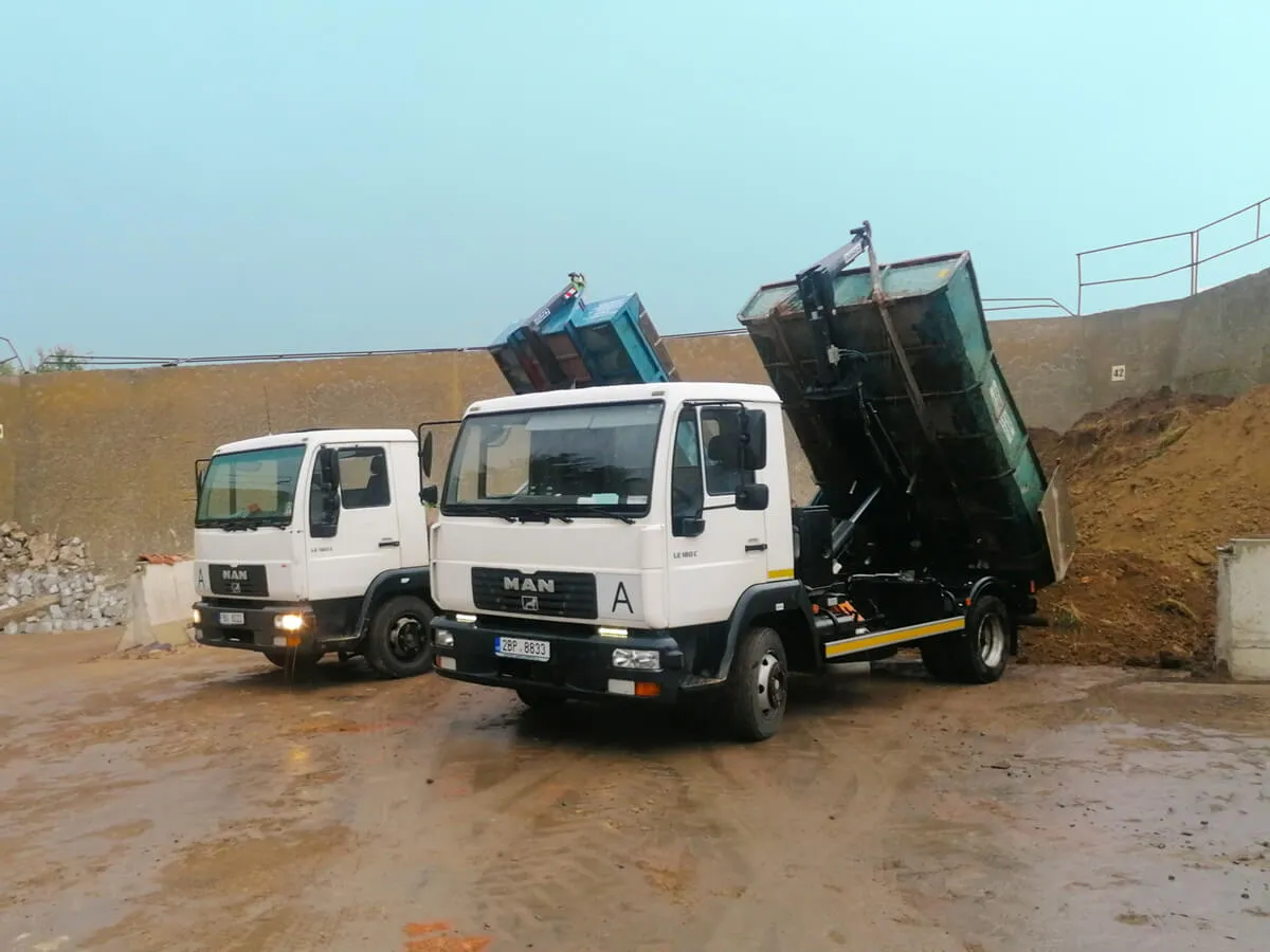 Mezi naše další služby patří nákladní autodoprava - kontejnery, přeprava sypkého a stavebního materiálu (dovoz písku, kamene, betonu aj.), odvoz stavební sutě a zeminy.