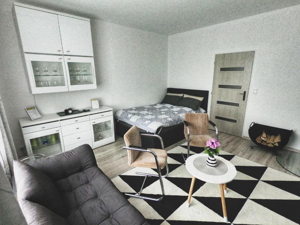 Apartmán Zouharka se nachází ve Františkových Lázních a nabízí komfortní ubytování s manželskou postelí, plně vybavenou kuchyní, obývacím pokojem s TV a krbem.