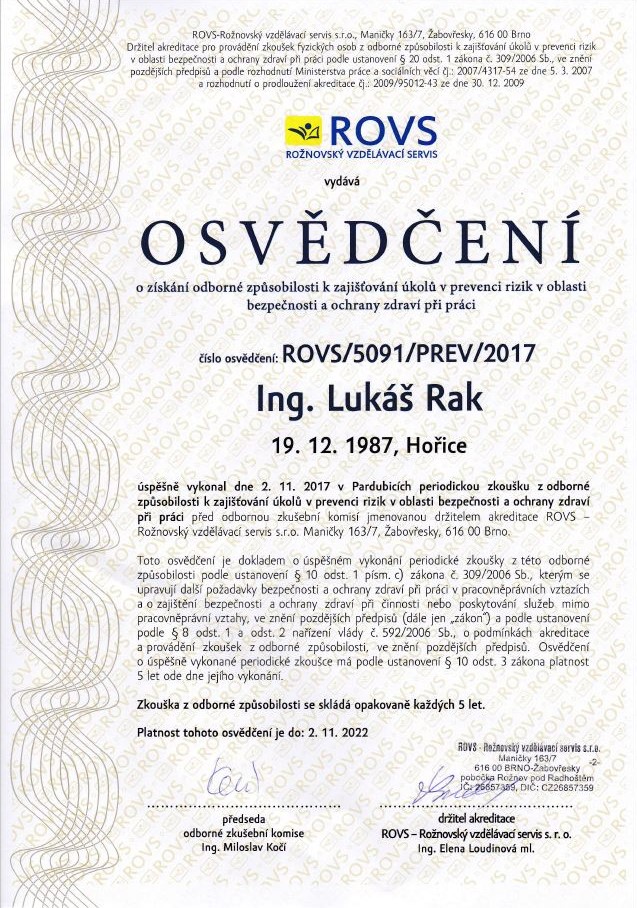 Společnost ELGESS je v současné době sdružuje 2 podnikající fyzické osoby, které pokračují v zajišťování služeb v oblasti bezpečnosti a ochrany zdraví při práci (BOZP) a požární ochrany (PO).