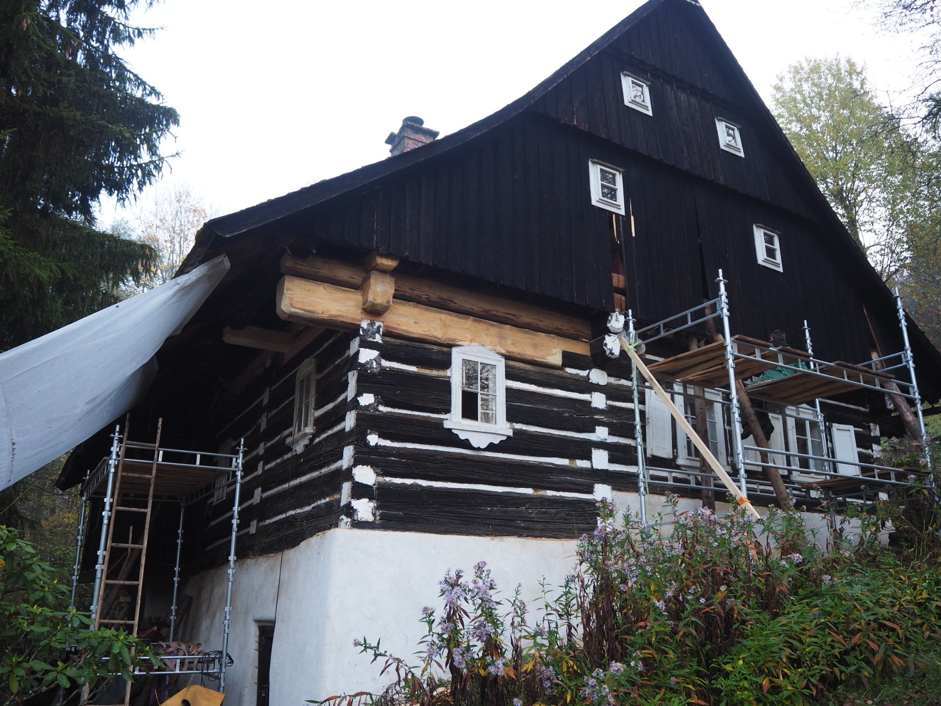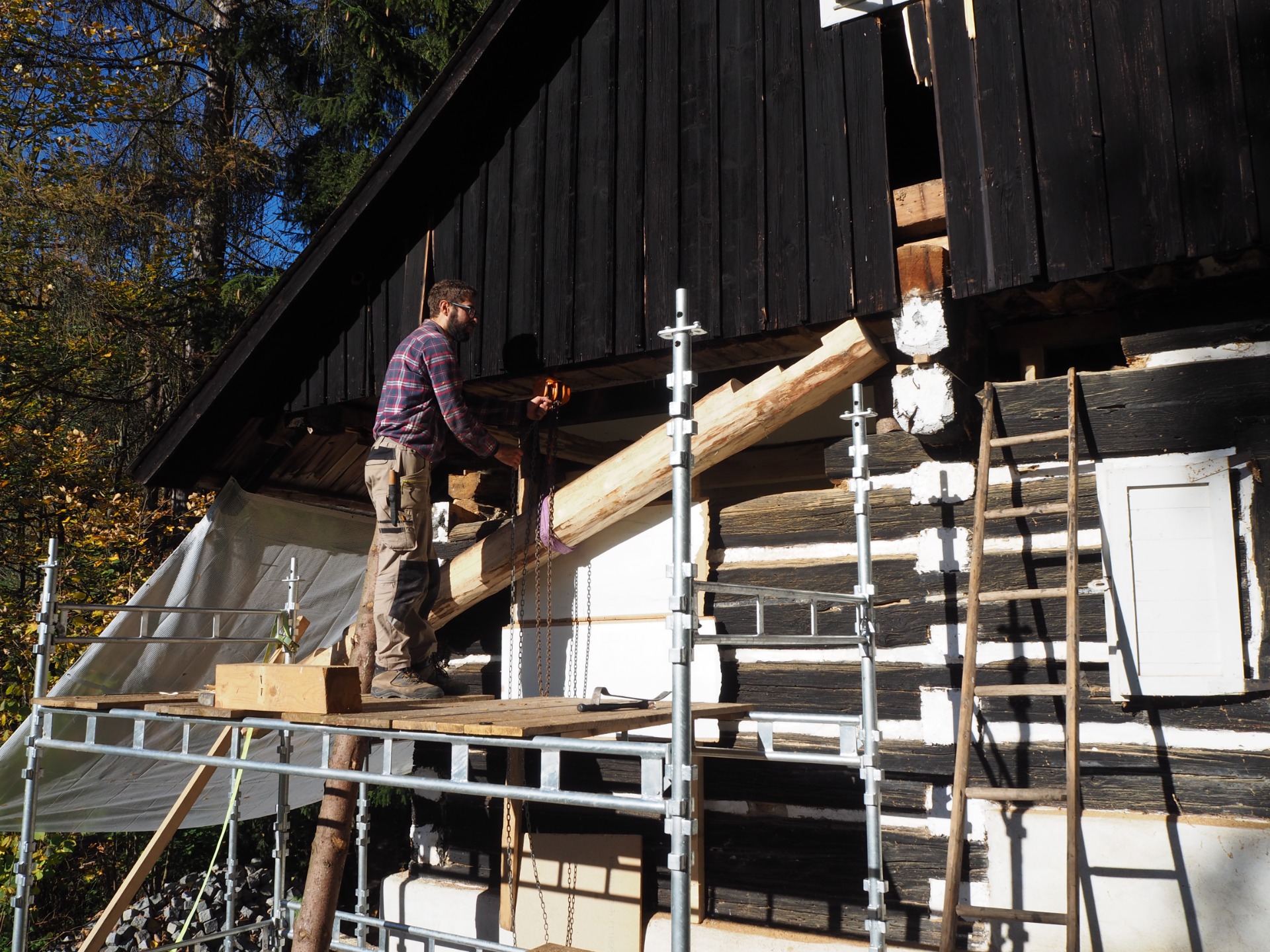 Věnujeme se opravám historických dřevěných konstrukcí, restaurování a konzervací stavebně-truhlářských prvků (historická okna, dveře, podlahy, stropy atd.), dále tradiční vápenné omítky a ostatním činnostem souvisejícím s obnovou původních prvků lidové architektury.