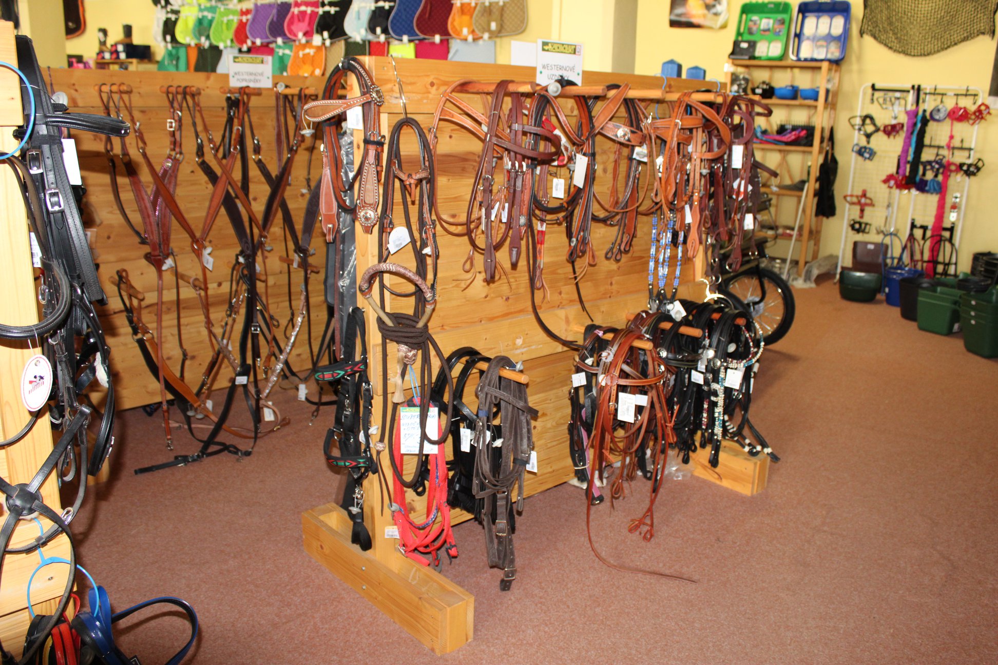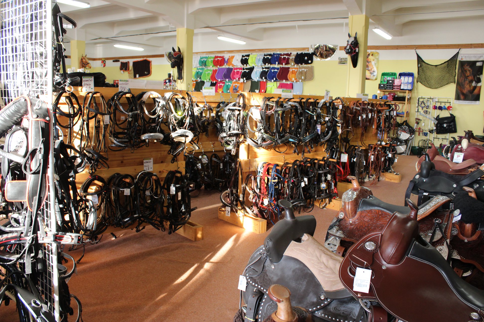 Máme skladem vše co potřebujete na koně i jezdce. Nabízíme sedla, bezpečnostní vesty a přilby, chrániče, uzdečky, kočáry, vybavení a oblečení pro jezdce jak v anglickém tak westernovém stylu. Doplňkem jsou stájové potřeby, kosmetika a vše pro pastvinu i výběhy.