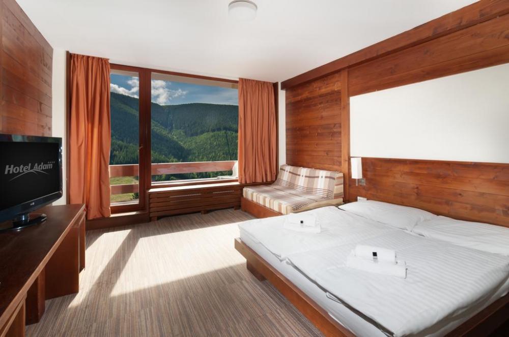 Hotel Adam Špindlerův Mlýn**** je stylový wellness hotel v srdci Krkonoš. U nás můžete být nad věcí, a to nejen díky nadmořské výšce 850 m.n.m. a dechberoucímu výhledu na okolní svahy. Čeká Vás wellness s bazénem, saunami a masážemi, krásné pokoje i panoramatická restaurace.
