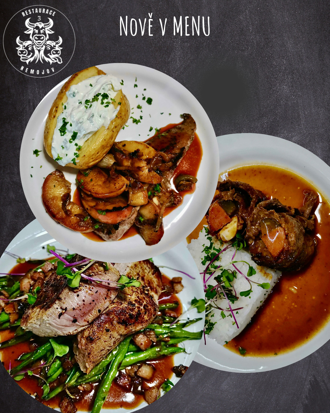 V srdci Nemojova se nachází Restaurace 3 Nemojov, kde pro Vás vaříme tradiční česká jídla doplněná o speciality mezinárodní kuchyně. Můžete se těšit na tematické víkendy jako například americké BBQ, italské delikatesy, grilovaná jídla, burgery či mořské plody.