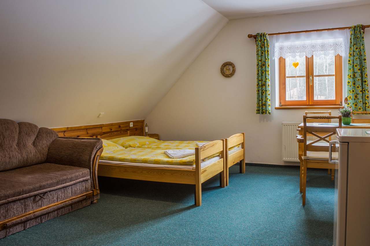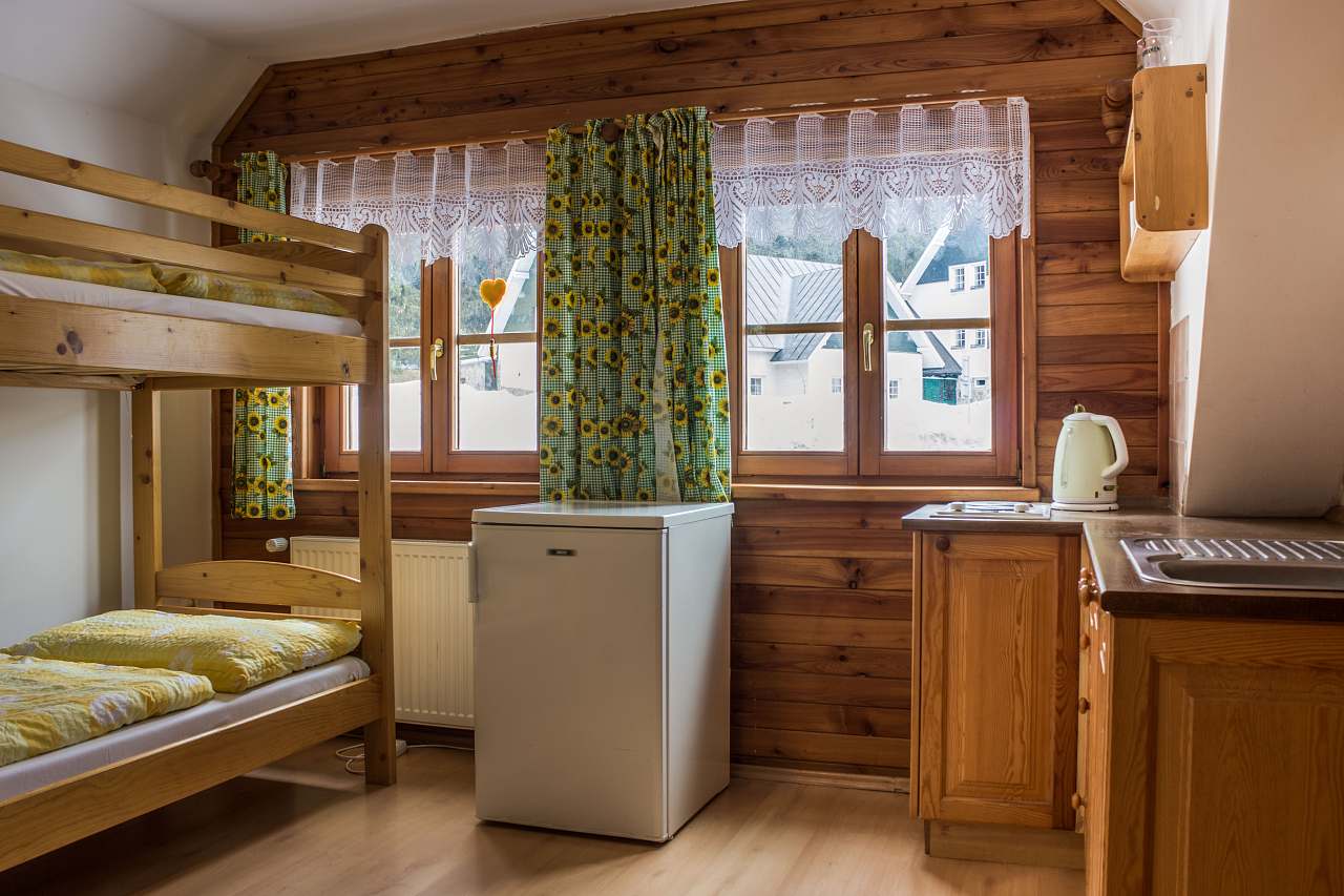 Nabízíme ubytování v naší nádherné chalupě. K dispozici je dvou, tří a čtyřlůžkové apartmány s vlastním sociálním zařízením a kuchyňským koutem.