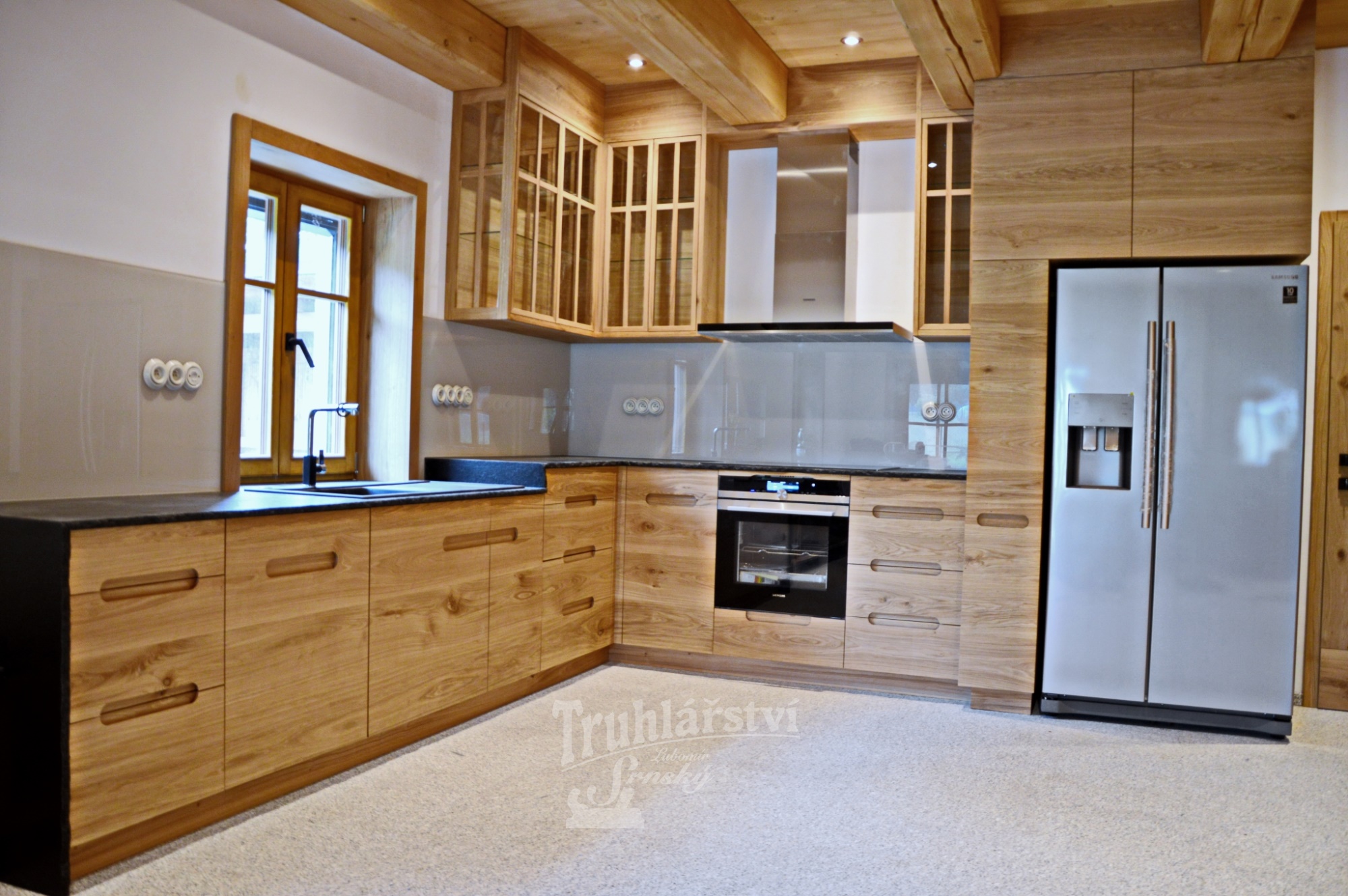 Naše truhlářství na zakázku vyrábí dveře, schody, kuchyně, nábytek, obložení, okna euro, špaletová a jiná. Vše dodáme včetně dopravy a montáže, v jakýchkoli tvarech, rozměrech, barvách i dřevinách po celé České republice.