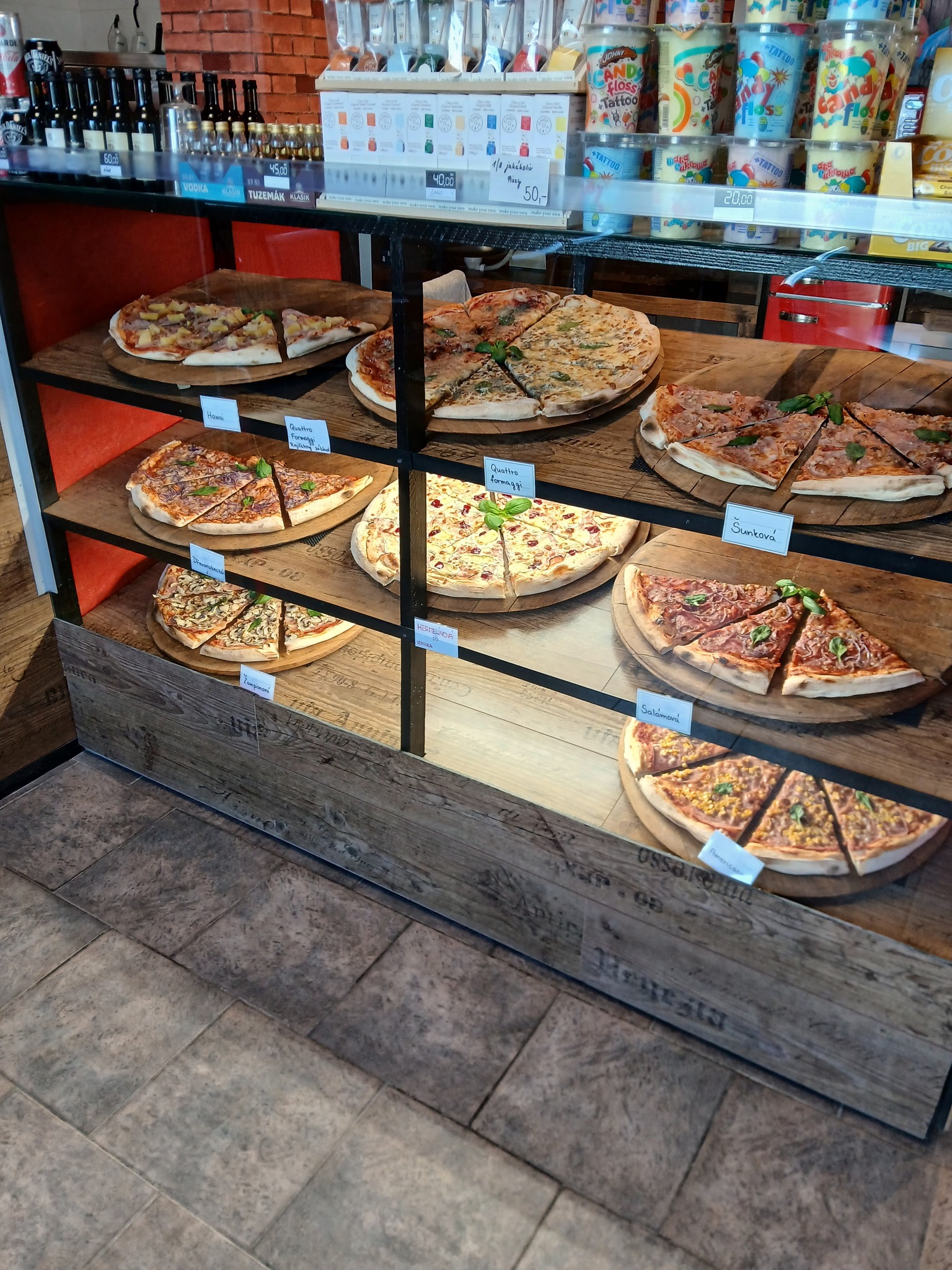 Naše pizzy připravujeme vždy čerstvé a ve velikosti 55 cm, abychom vám nabídli maximální chuťový zážitek. Nejsme restaurace s obsluhou, ale fungujeme formou pultového prodeje.