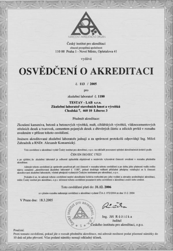 TESTAV - LAB s.r.o. - Akreditovaná zkušební laboratoř stavebních hmot a výrobků č. 1180. Člen certifikačního sdružení stavcert - autorizovaná osoba A205. Defektoskopické středisko.