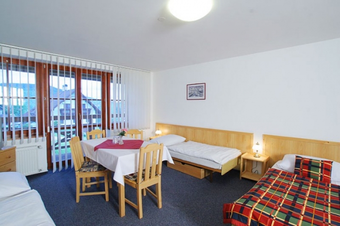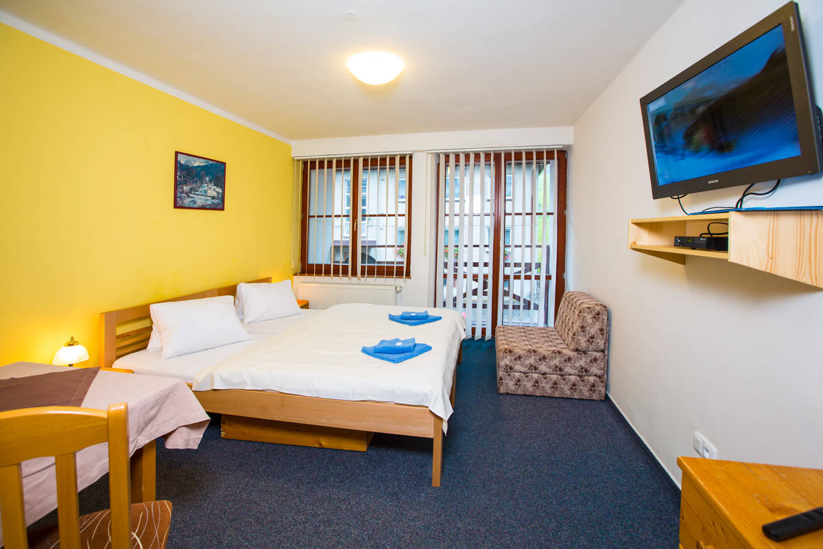 • 3 čtyřlůžkové pokoje s balkonem, vana
