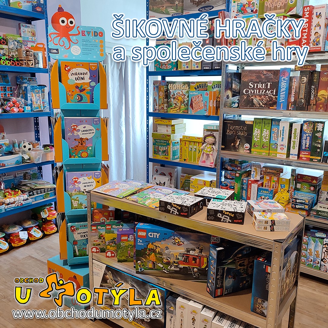 Internetový a kamenný obchod U Motýla Vám nabízí široký výběr z kreativních hraček a společenských her, které podporují rozvoj logického myšlení a zručnost dětí. Prodáváme šikovné hračky a pomůcky nejen do škol, školních družin a mateřských školek.