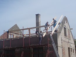 Provádíme tesařské, pokrývačské a klempířské práce. V případě potřeby zajistíme zámečnické práce (ocelové výztuže krovu) a zednické práce (přezdění komínů).