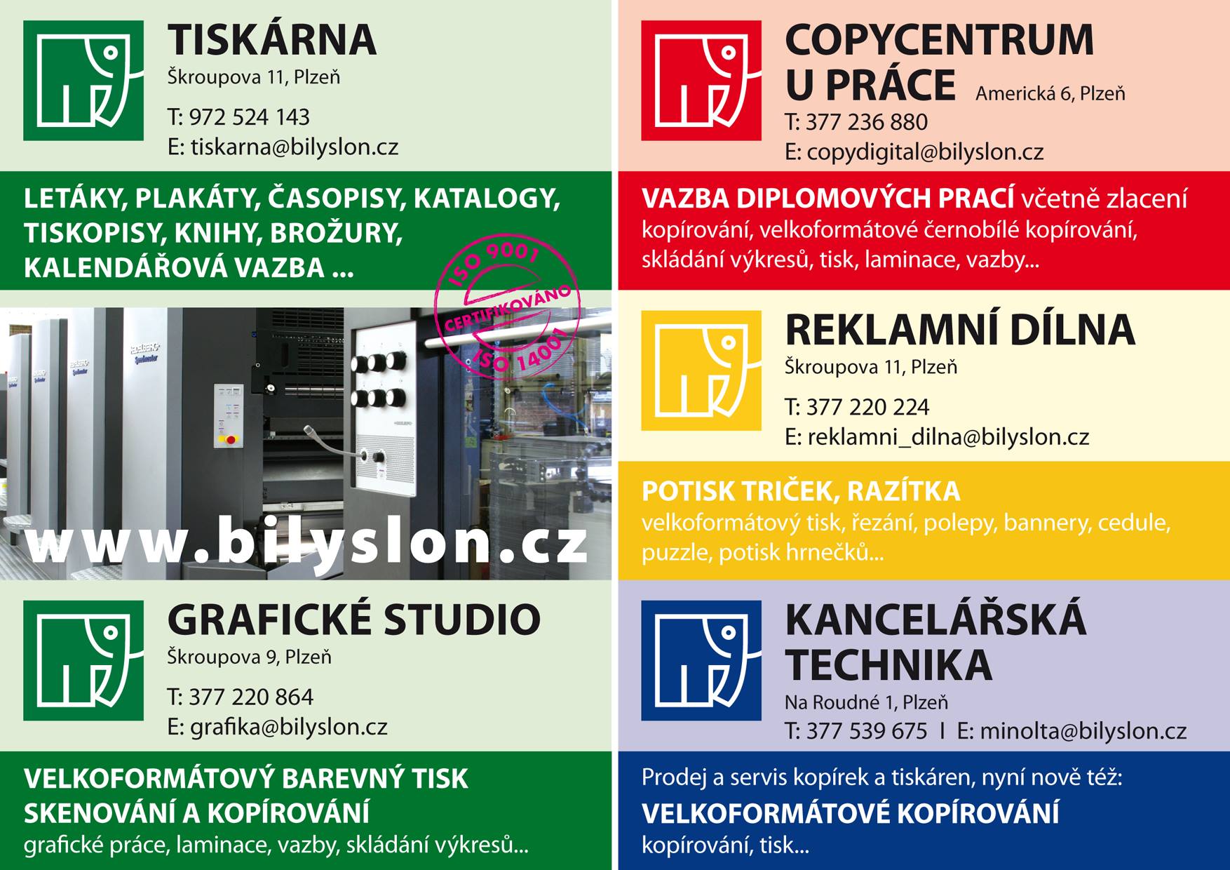 Naše tiskárna Vám již skoro dvě desetiletí nabízí kvalitní služby v oblasti archového ofsetového tisku, knihařských a dokončovacích prací. Zároveň Vám můžeme pomoci s grafickými návrhy Vašich tiskovin, DTP a předtiskovou přípravou.