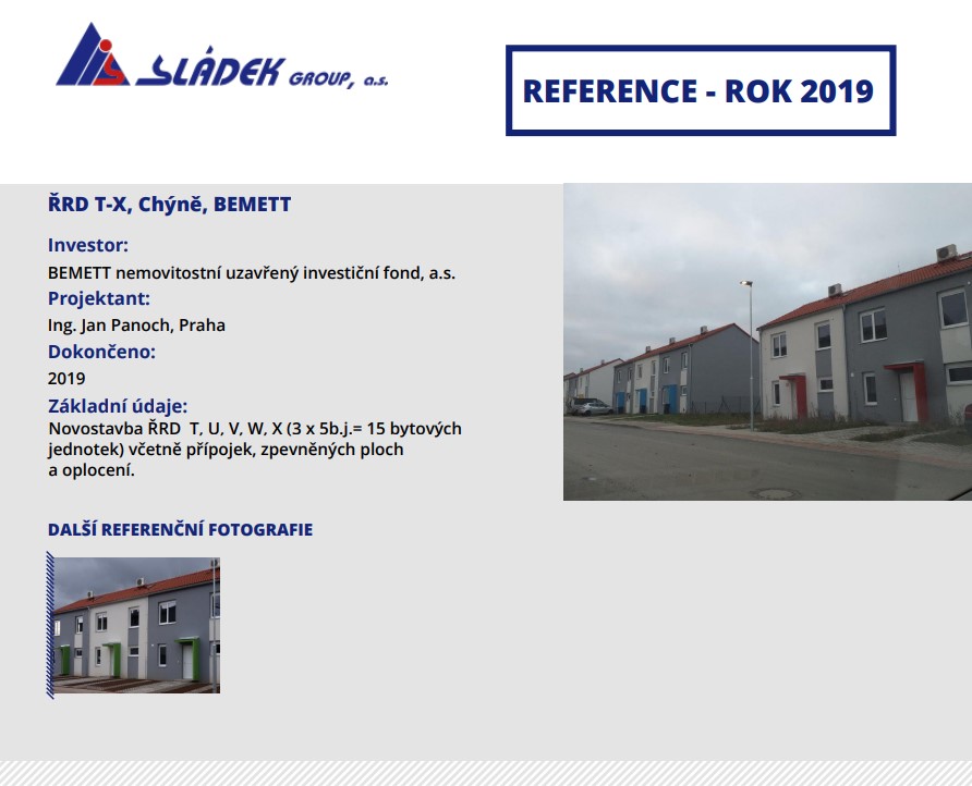 SLÁDEK GROUP, a.s. je stavební a developerská společnost se sídlem v Benešově, která provádí stavební díla pro soukromý a veřejný sektor a zároveň zajišťuje vlastní developerské projekty.