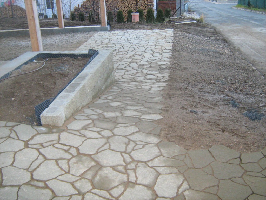 Pokládání zámkové dlažby a zahradní dlažby.