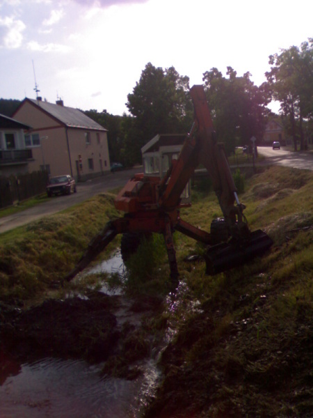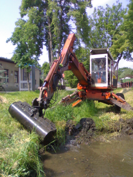 Specializujeme se na čištění a odbahňování toků a rybníků, zpevňování břehů vodních toků, práce ve špatně dostupných terénech kráčivým rypadlem.