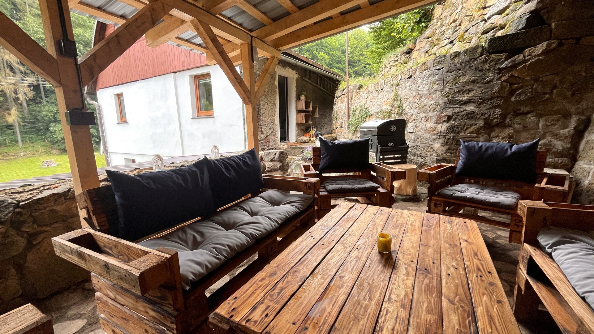 Součástí objektu je zahrada s pergolou a venkovním posezením až pro 8 osob. K dispozici je také gril pro příjemné večery.