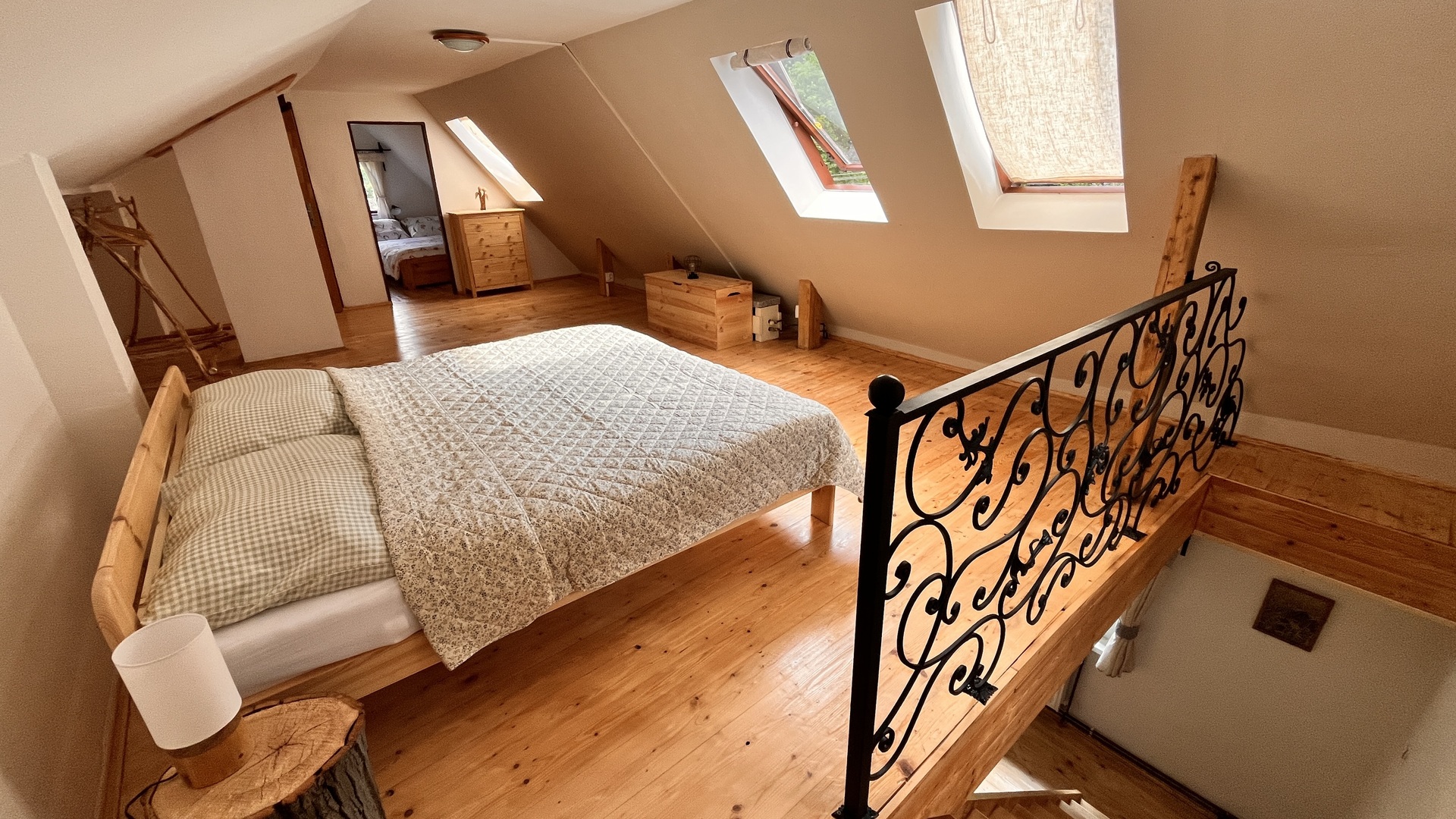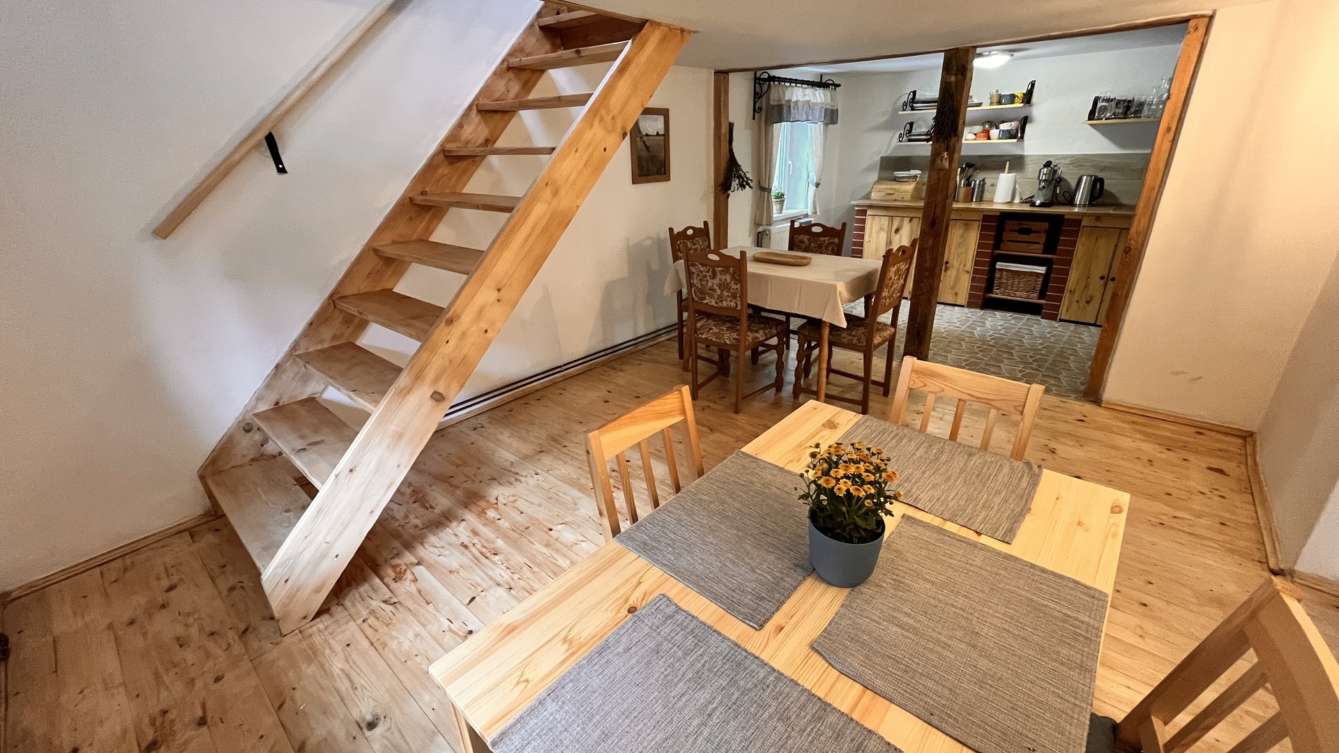Dům nabízí komfortní zázemí se třemi ložnicemi, obývacím prostorem, plně vybavenou kuchyní a dvěma koupelnami. Samozřejmostí je klimatizace v podkroví, Wi-Fi připojení a soukromé parkování zdarma přímo u objektu.