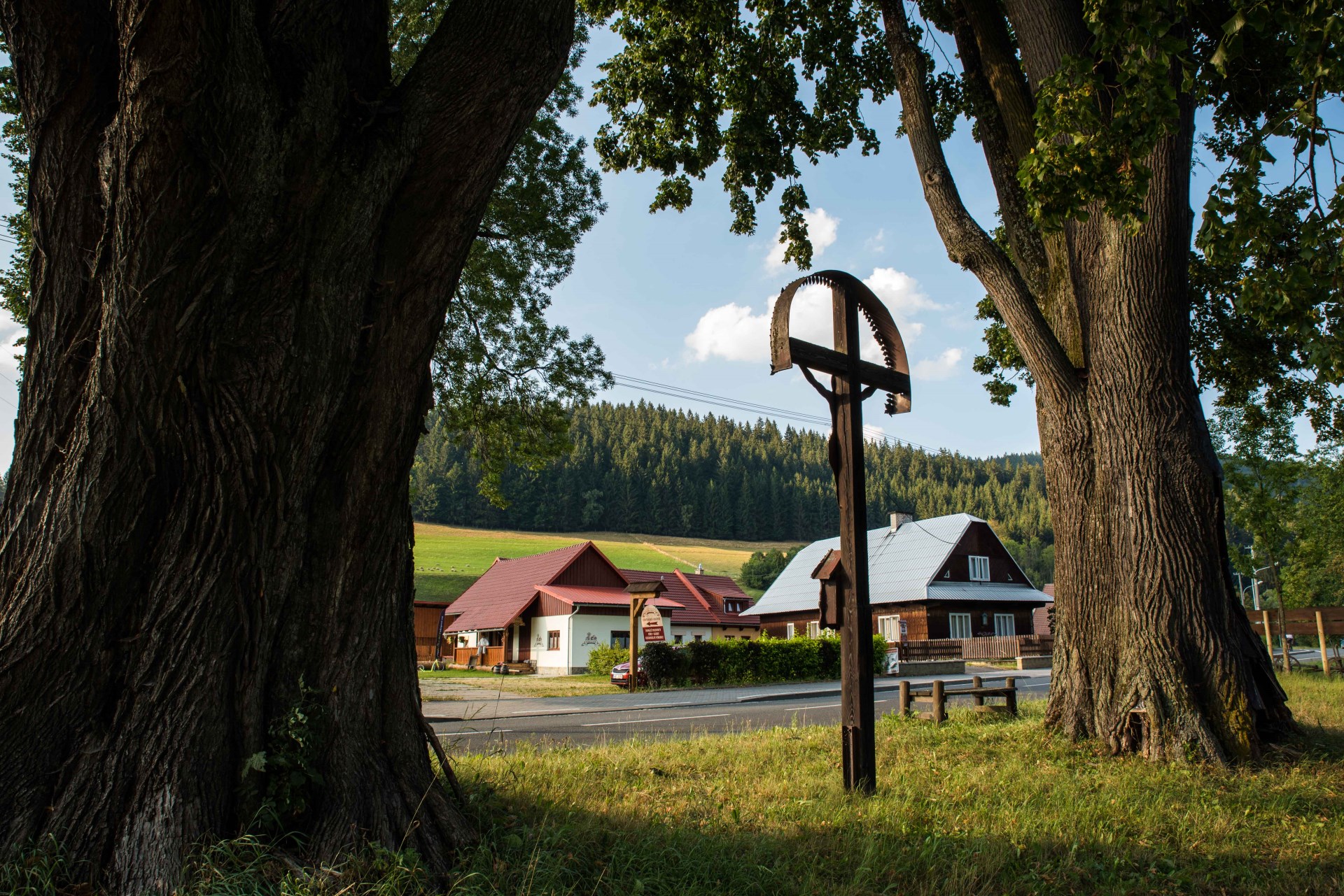 Dvůr U Kříža nabízí ubytování pro 18-20 osob ve dvou budovách. Jedinečný ráz naší vesnice Vás jistě okouzlí. Těšíme se na vaši návštěvu a věříme, že si u nás užijete příjemné chvíle.