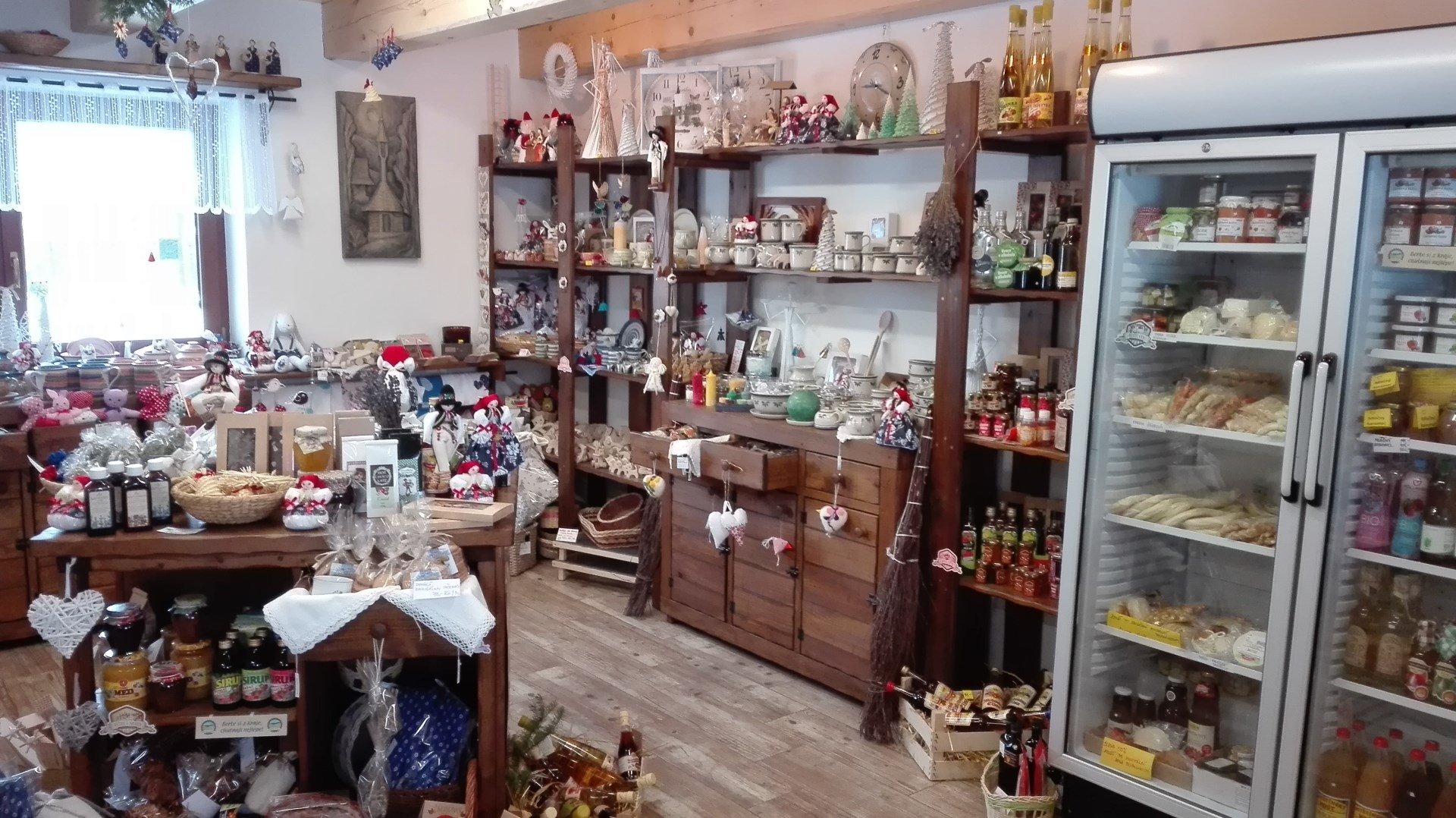 Nově otevřený obchůdek, ve kterém lze koupit domácí výrobky – sýry, sirupy, marmelády, bylinkové čaje, oleje, mýdla a drobné výrobky od regionálních řemeslníků.